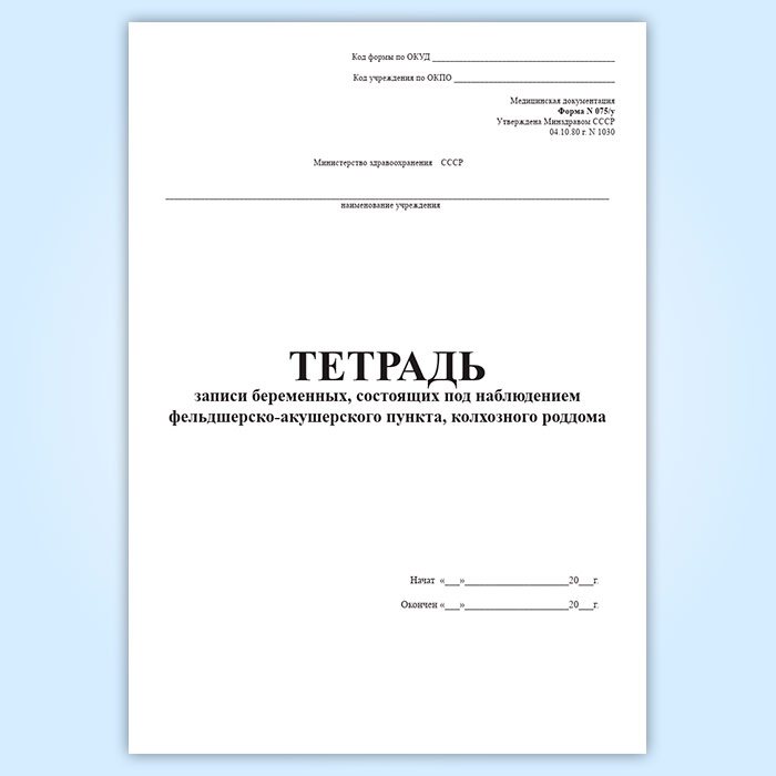 Тетрадь записи беременных, состоящих под наблюдением ФАП, колхозного роддома (форма 075/у) в Ижевске купить