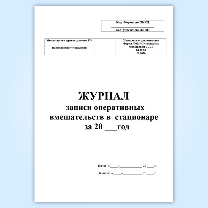 Журнал записи оперативных вмешательств в стационаре за год (форма 008/у) в Ижевске купить