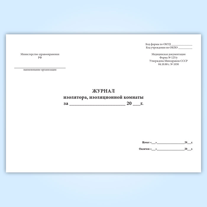 Журнал изолятора, изоляционной комнаты (форма 125/у) в Ижевске купить