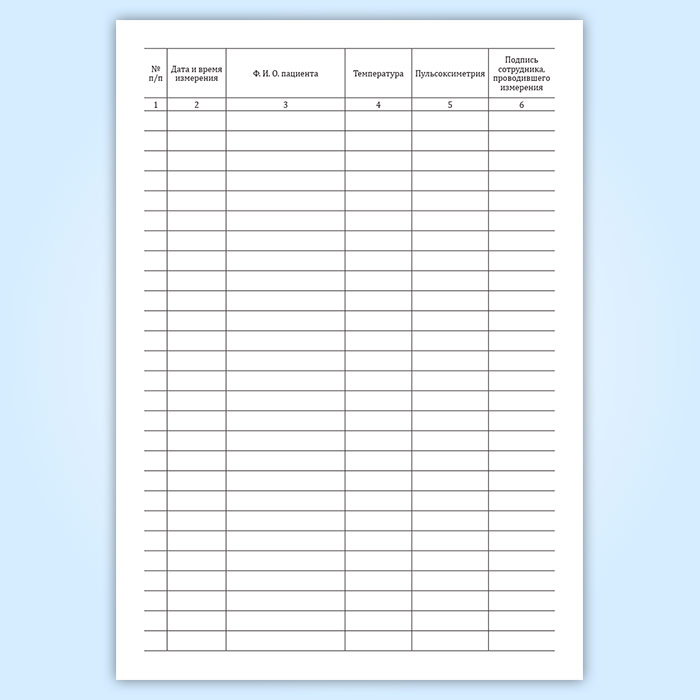 Журнал регистрации показаний пульсоксиметра и температуры тела пациентов в Ижевске купить