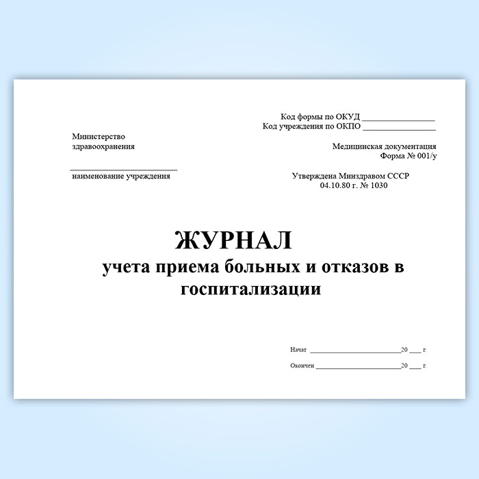 Журнал учета приема больных и отказов в госпитализации (форма 001/у) в Ижевске купить
