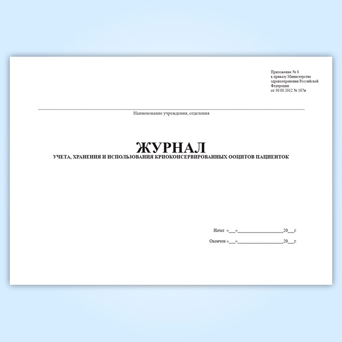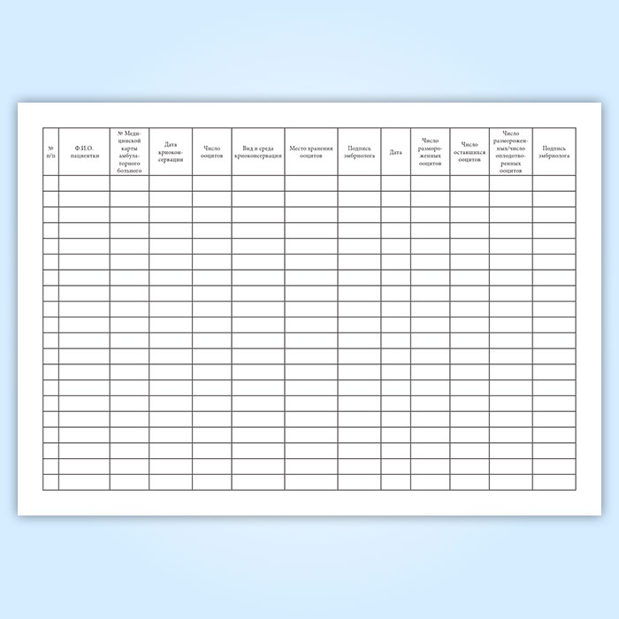 Журнал учета, хранения и использования криоконсервированных ооцитов пациенток в Ижевске купить