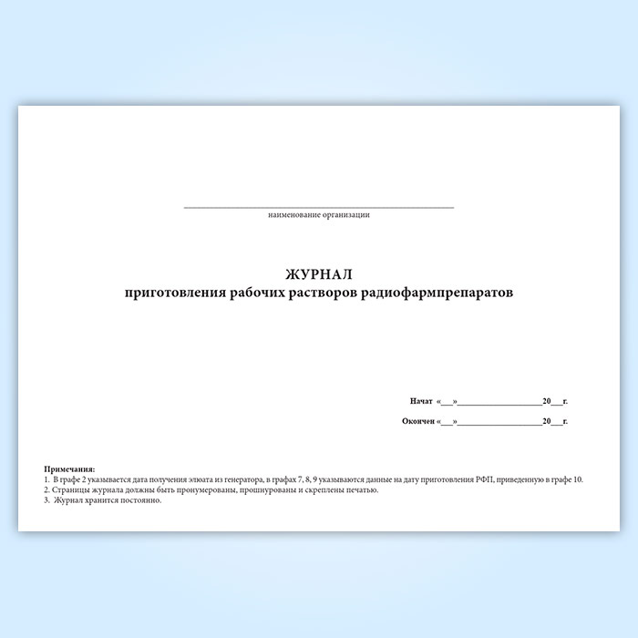 Журнал приготовления рабочих растворов радиофармпрепаратов в Ижевске купить