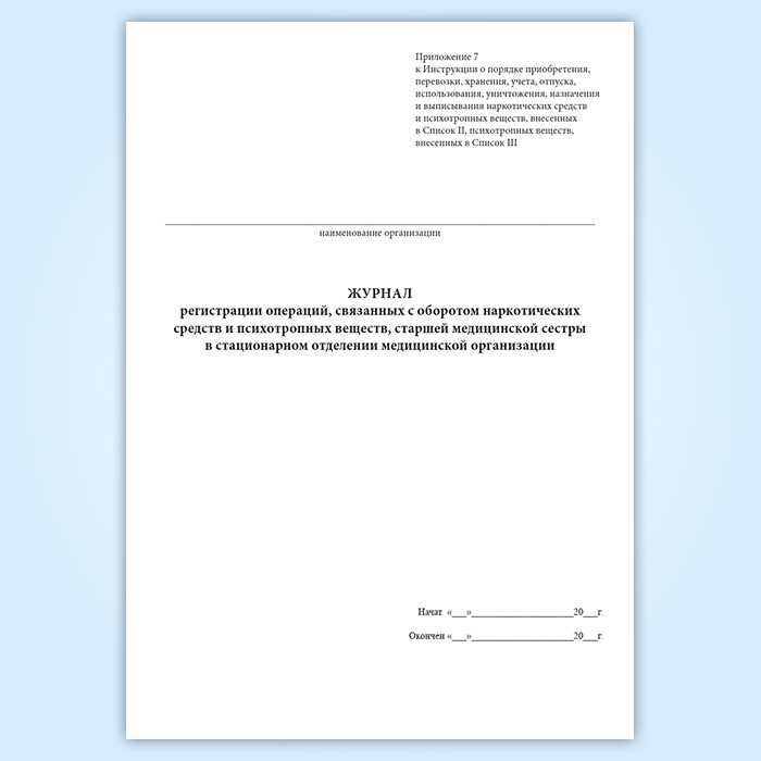 Журнал регистрации операций, связанных с оборотом наркотических средств и психотропных веществ старшей медицинской сестры в стационарном отделении медицинской организации в Ижевске купить