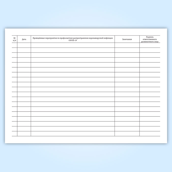 Журнал учета проведенных мероприятий по профилактике распространения коронавирусной инфекции COVID-19 в Ижевске купить