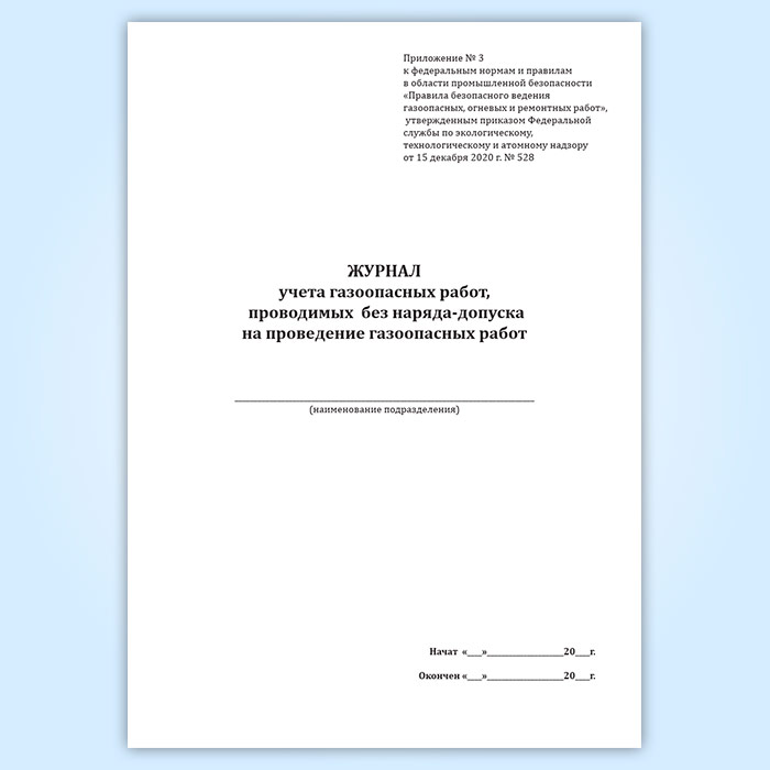 Журнал учета газоопасных работ, проводимых без наряда-допуска на проведение газоопасных работ в Ижевске купить