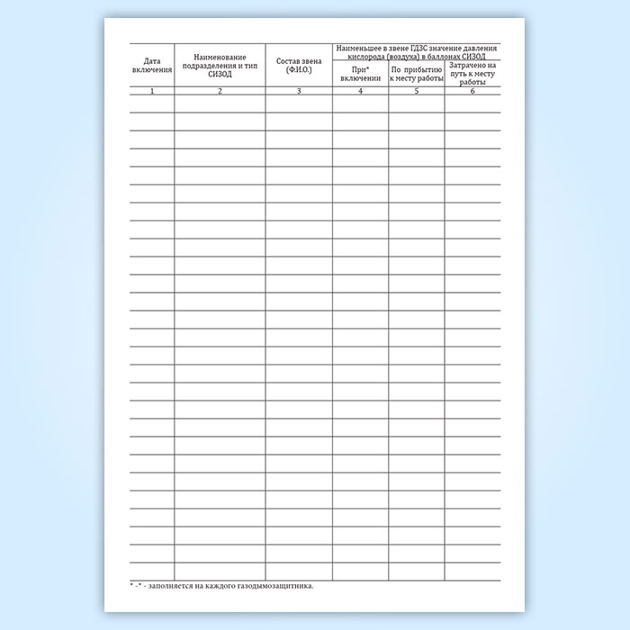 Журнал учета работающих звеньев газодымозащитной службе (ГДЗС) в Ижевске купить