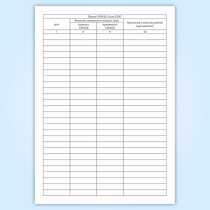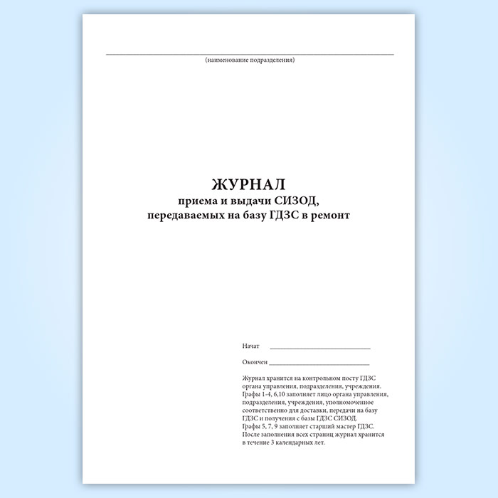 Журнал приема и выдачи СИЗОД, передаваемых на базу ГДЗС в ремонт в Ижевске купить