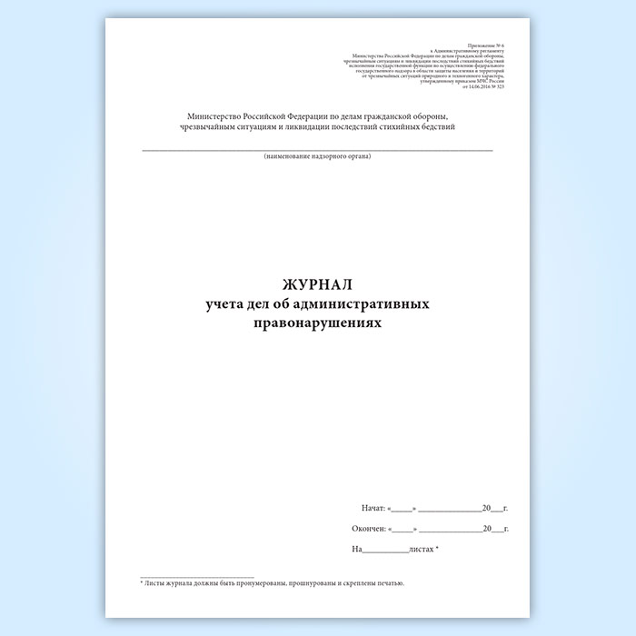 Журнал учета дел об административных правонарушениях (Приказ МЧС России от 14.06.2016 № 323) в Ижевске купить