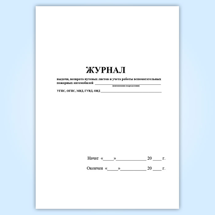 Журнал выдачи, возврата путевых листов и учета работы вспомогательных пожарных автомобилей в Ижевске купить