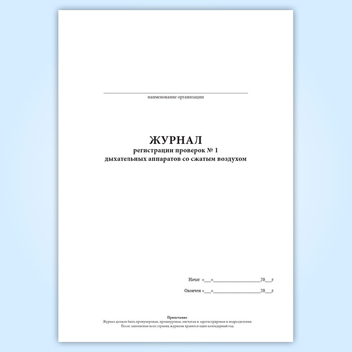 Журнал регистрации проверок N 1 дыхательных аппаратов со сжатым воздухом в Ижевске купить