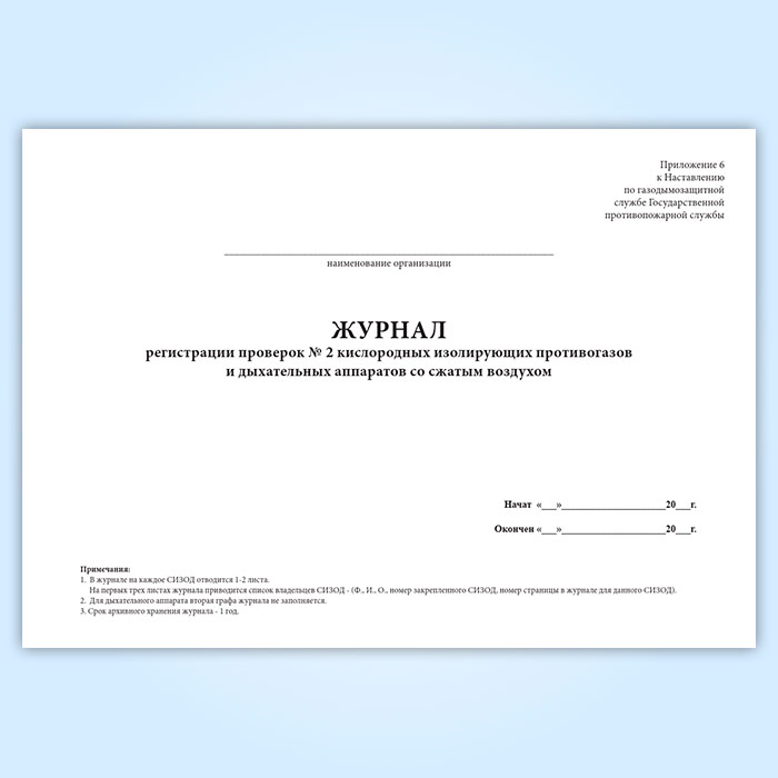 Журнал регистрации проверок № 2 кислородных изолирующих противогазов и дыхательных аппаратов на сжатом воздухе в Ижевске купить