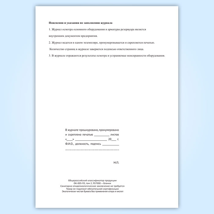 Журнал осмотра основного оборудования и арматуры резервуара (нефтепродукты) в Ижевске купить
