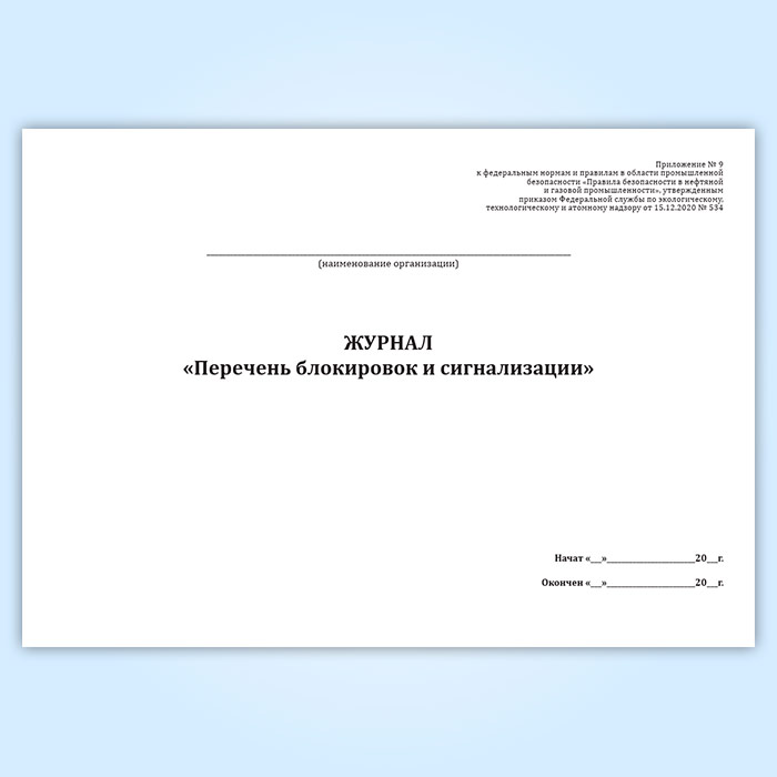 Журнал «Перечень блокировок и сигнализации» в Ижевске купить