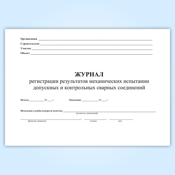 Журнал регистрации результатов механических испытаний допускных и контрольных сварных соединений в Ижевске купить