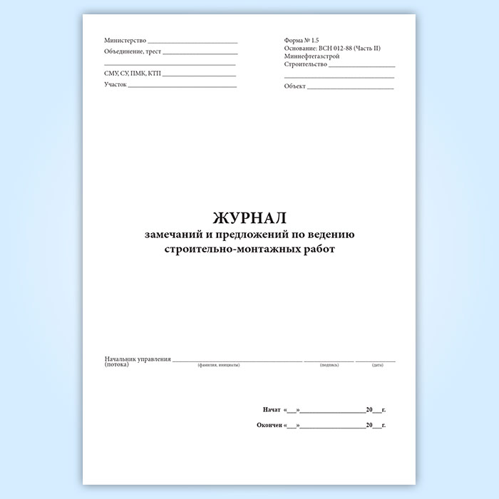 Журнал замечаний и предложений по ведению строительно-монтажных работ в Ижевске купить