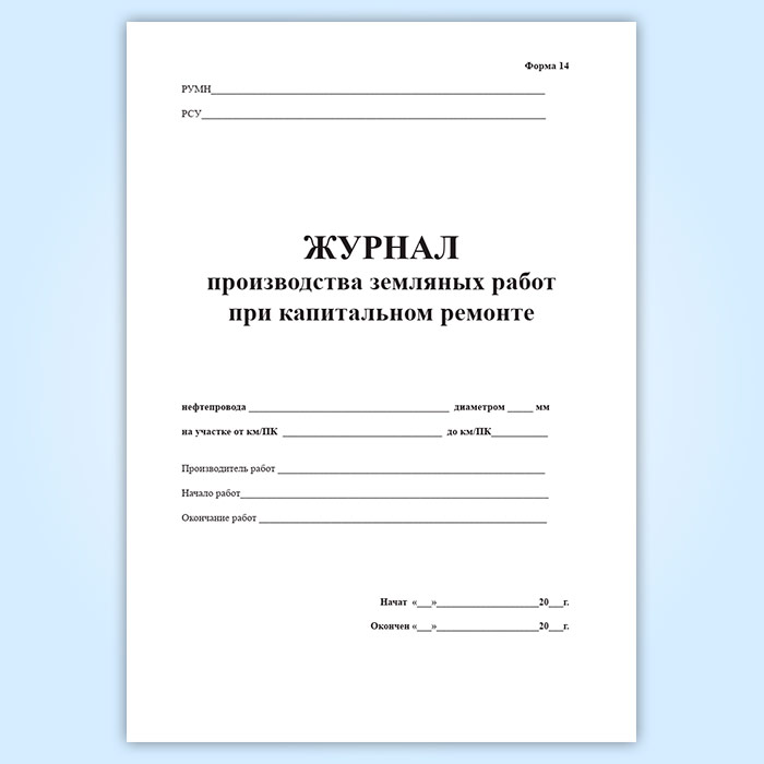 Журнал производства земляных работ при капитальном ремонте (форма 14) в Ижевске купить