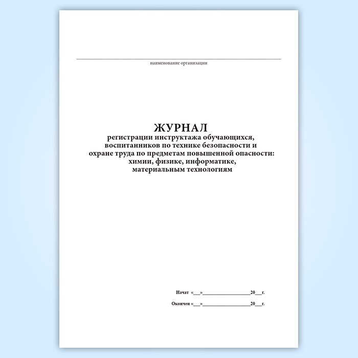 Журнал регистрации инструктажа обучающихся, воспитанников по технике безопасности и охране труда по предметам повышенной опасности: химии, физике, информатике, материальным технологиям в Ижевске купить