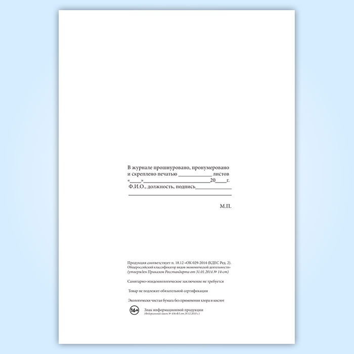 Вы получаете печатную продукцию прошнурованной и c местом для вашей печати в соответствии с действующими нормативными документами: