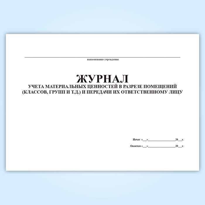 Журнал учета материальных ценностей в разрезе помещений (классов, групп и т.д.) и передачи их ответственному лицу в Ижевске купить