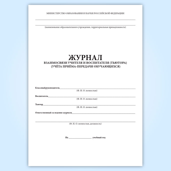 Журнал взаимосвязи учителя и воспитателя (тьютора) (учета-передачи учащихся) в Ижевске купить