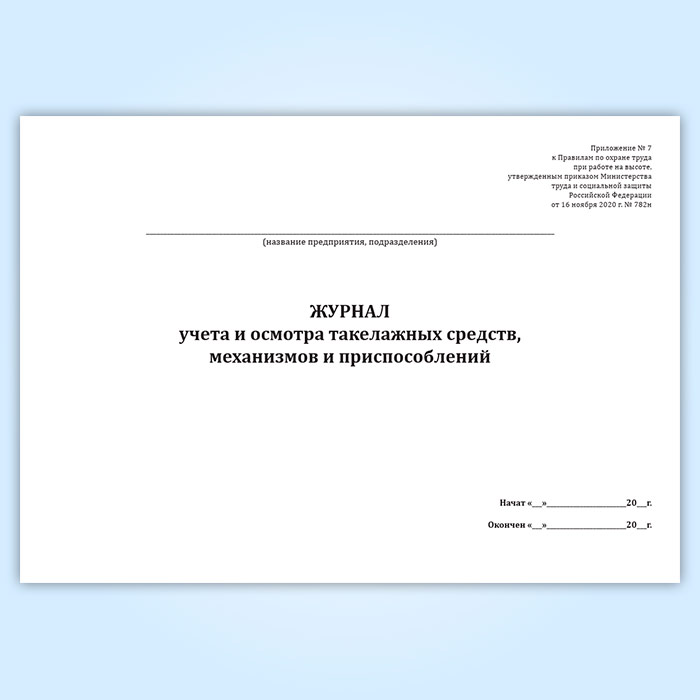 Журнал учета и осмотра такелажных средств, механизмов и приспособлений (Приказ Минтруда России от 16.11.2020 N 782н) в Ижевске купить