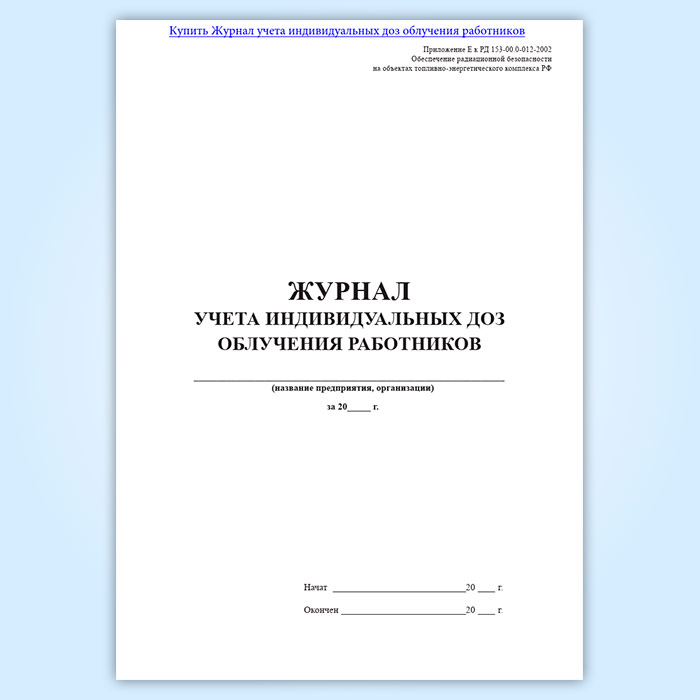 Журнал учета индивидуальных доз облучения работников в Ижевске купить