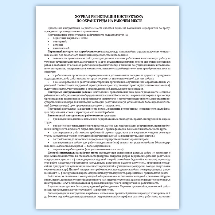 Журнал регистрации инструктажа на рабочем месте в Ижевске купить