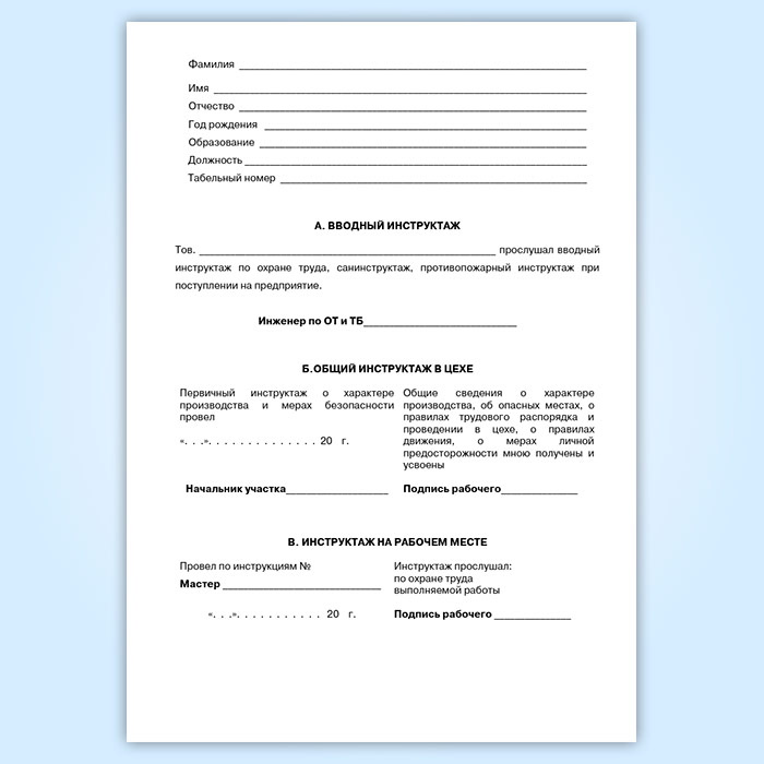 Личная книжка инструктажа по охране труда в Ижевске купить