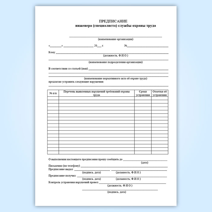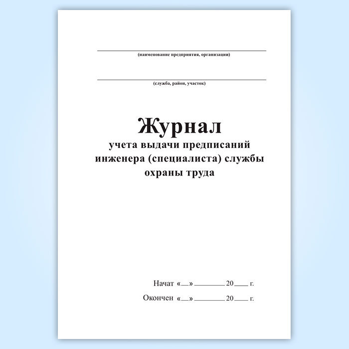 Журнал учета выдачи предписаний инженера (специалиста) службы охраны труда в Ижевске купить