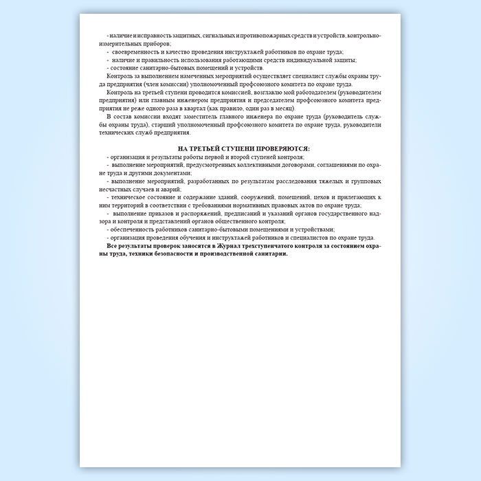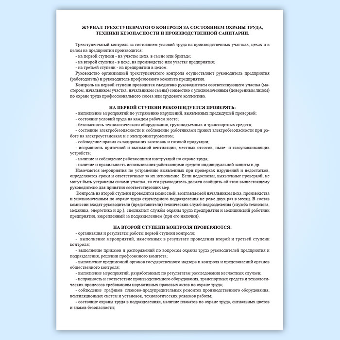 Журнал трехступенчатого контроля за состоянием охраны труда, техники безопасности и производственной санитарии 1 и 2 ступени в Ижевске купить