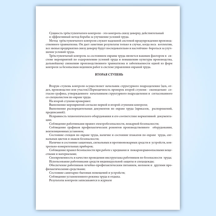 Журнал трёхступенчатого контроля за состоянием охраны труда, техники безопасности и производственной санитарии II ступень (форма Ж18) в Ижевске купить