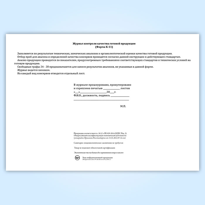 Журнал контроля качества готовой продукции (форма К-11) в Ижевске купить