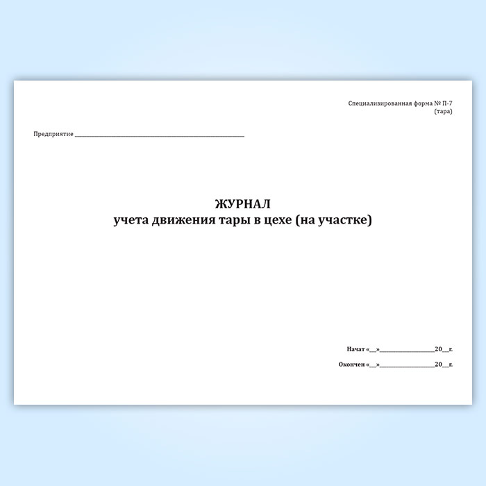 Журнал учета движения тары в цехе (форма П-7 тара) в Ижевске купить