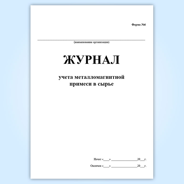 Журнал учета металломагнитной примеси в сырье (форма № 6) в Ижевске купить