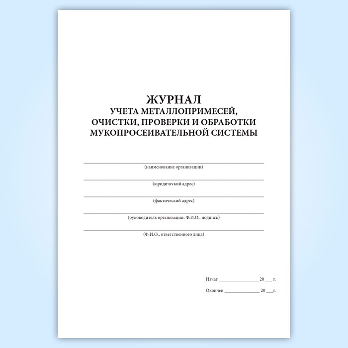 Журнал учета металлопримесей, очистки, проверки и обработки мукопросеивательной системы в Ижевске купить