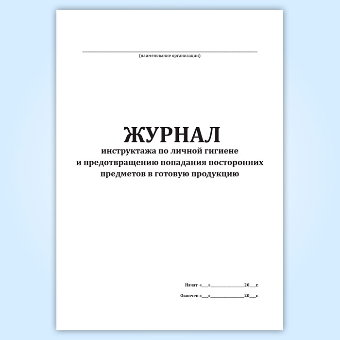 Журнал инструктажа по личной гигиене и предотвращению попадания посторонних предметов в готовую продукцию в Ижевске купить