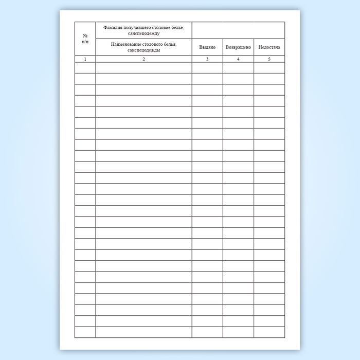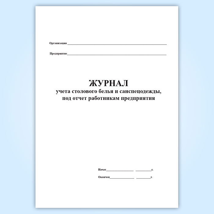 Журнал учета столового белья и санспецодежды, выдаваемой под отчет работникам предприятия в Ижевске купить