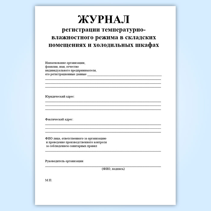 Журнал регистрации температурно-влажностного режима в складских помещениях и холодильных шкафах в Ижевске купить