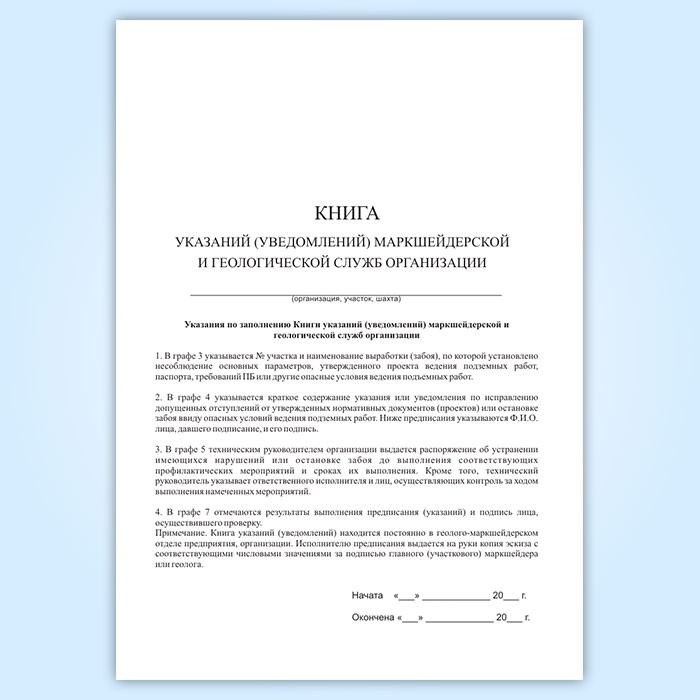 Книга указаний (уведомлений) маркшейдерской и геологической служб организации в Ижевске купить
