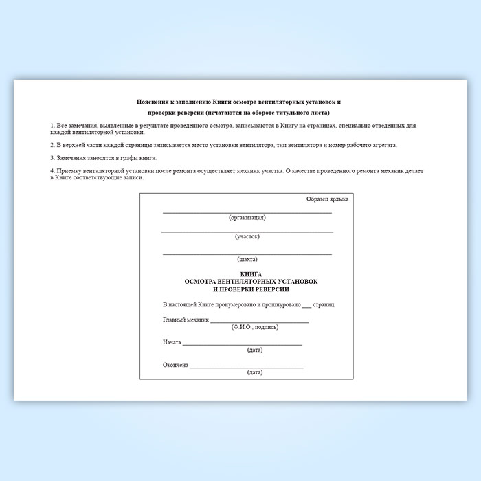 Книга осмотра вентиляторных установок и проверки реверсии в Ижевске купить