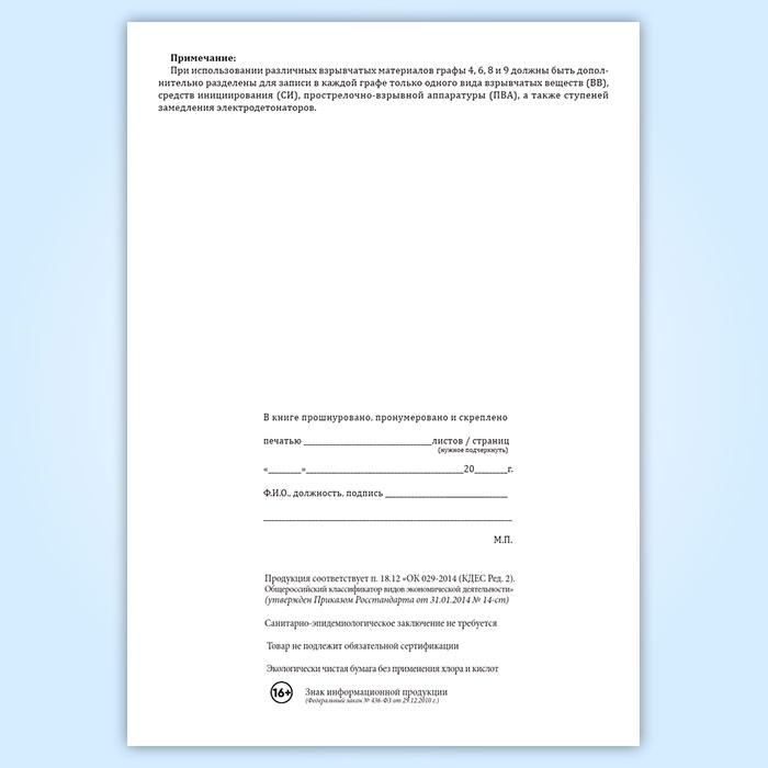 Книга учета выдачи и возврата взрывчатых материалов в Ижевске купить