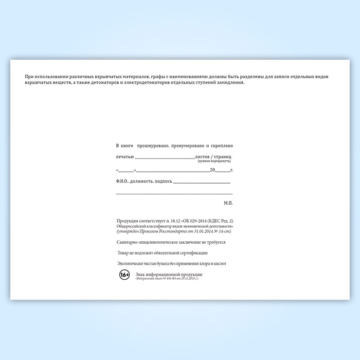 Книга учета прихода и расхода взрывчатых материалов участкового пункта хранения ВМ в Ижевске купить