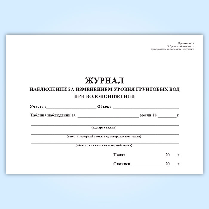 Журнал наблюдений за изменением уровня грунтовых вод при водопонижении в Ижевске купить