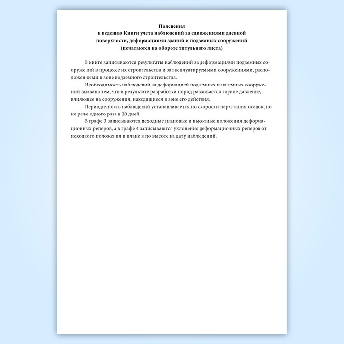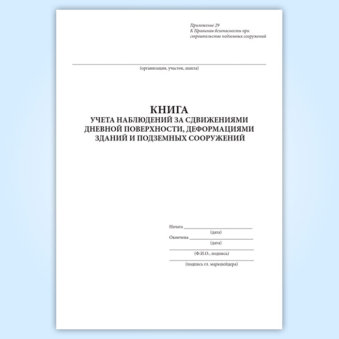 Книга учета наблюдений за сдвижениями дневной поверхности, деформациями зданий и подземных сооружений в Ижевске купить