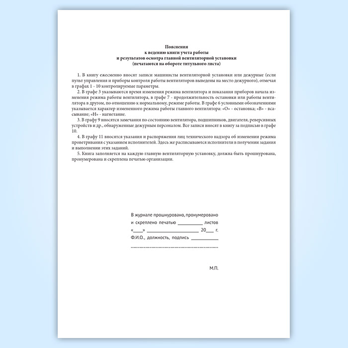 Книга учета работы и результатов осмотра главной вентиляторной установки в Ижевске купить