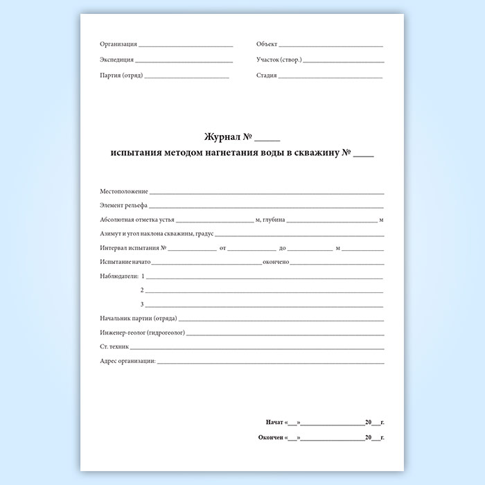 Журнал испытания методом нагнетания воды в скважину в Ижевске купить
