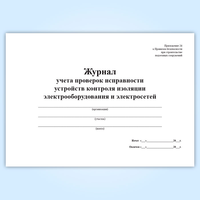 Журнал учета проверок исправности устройств контроля изоляции электрооборудования и электросетей в Ижевске купить