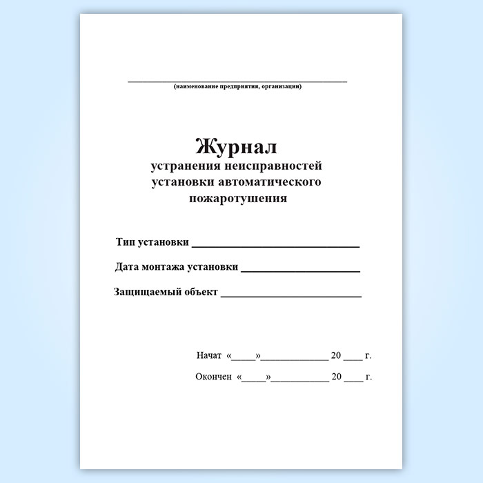 Журнал устранения неисправностей установки автоматического пожаротушения в Ижевске купить