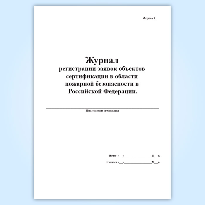 Журнал регистрации заявок объектов сертификации в области пожарной безопасности в Российской Федерации (форма 9) в Ижевске купить